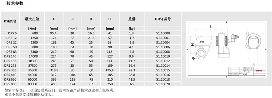 單油管系統,可與所有ITH扳手泵通用;通過不同驅動筒頭DRS-KSE, DRS-SE, DRS-VE的選用;可適應多種工況。維護簡便的部件設計:液壓油缸,棘輪系統,殼體,支撐臂;實現快速更換耗損部件,現有套筒可通過接頭DRS-VE實現連接。